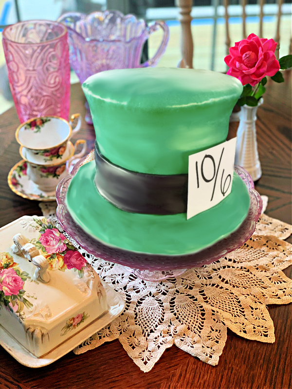 Or create an elaborate tea time, including this “Mad Hatter’s Hat” cake (below) like Olivia made.