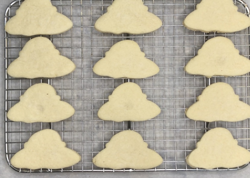 5. Bake cookies for 7 to 9 minutes. Do not brown the cookies. Allow cookies to cool for at least 8 minutes on the baking sheet before carefully removing to a cooling rack. Allow to completely cool before icing.