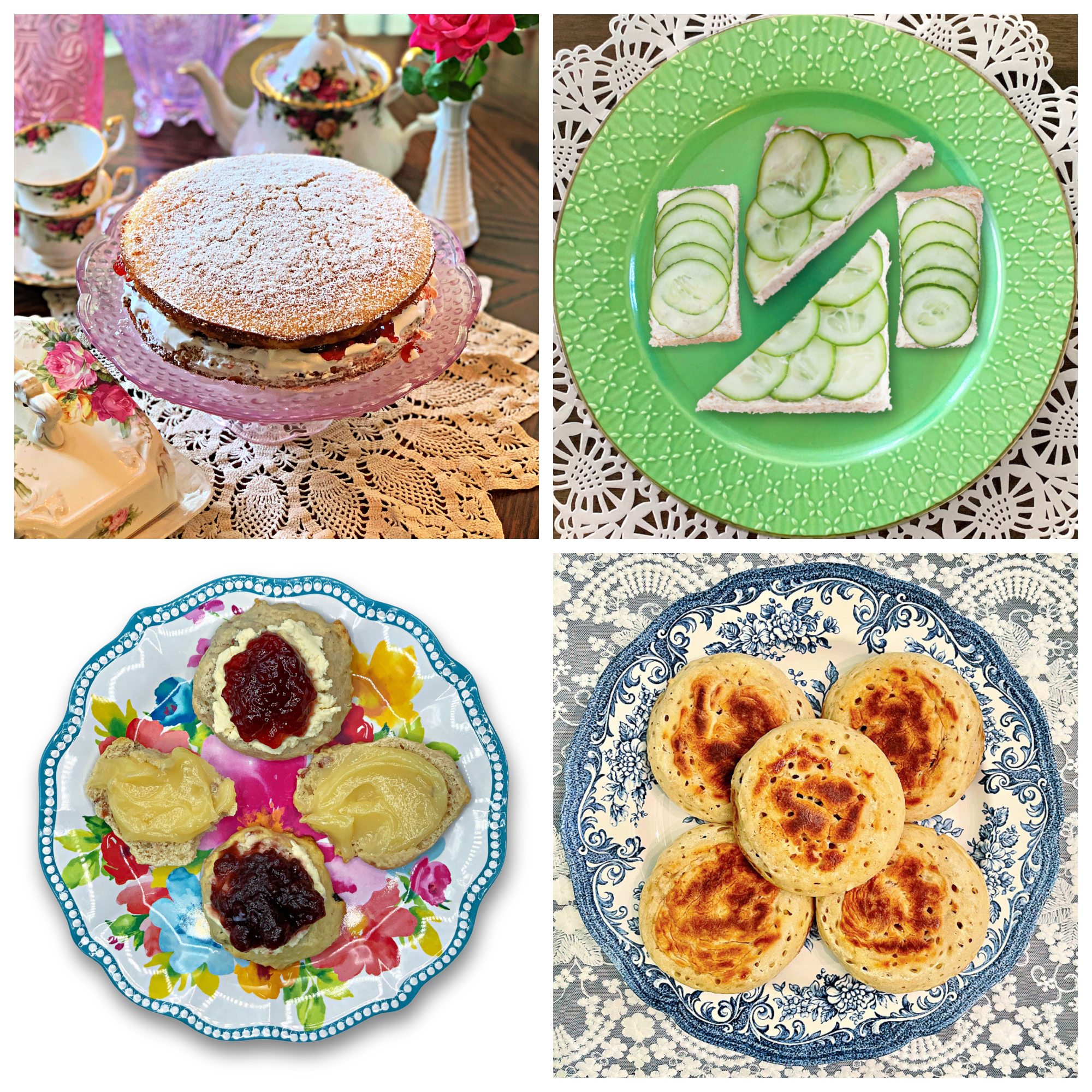 - 4 Teatime Recipes: Victoria Sponge Cake, Scones and Devonshire Cream, Crumpets, and Cucumber Sandwiches