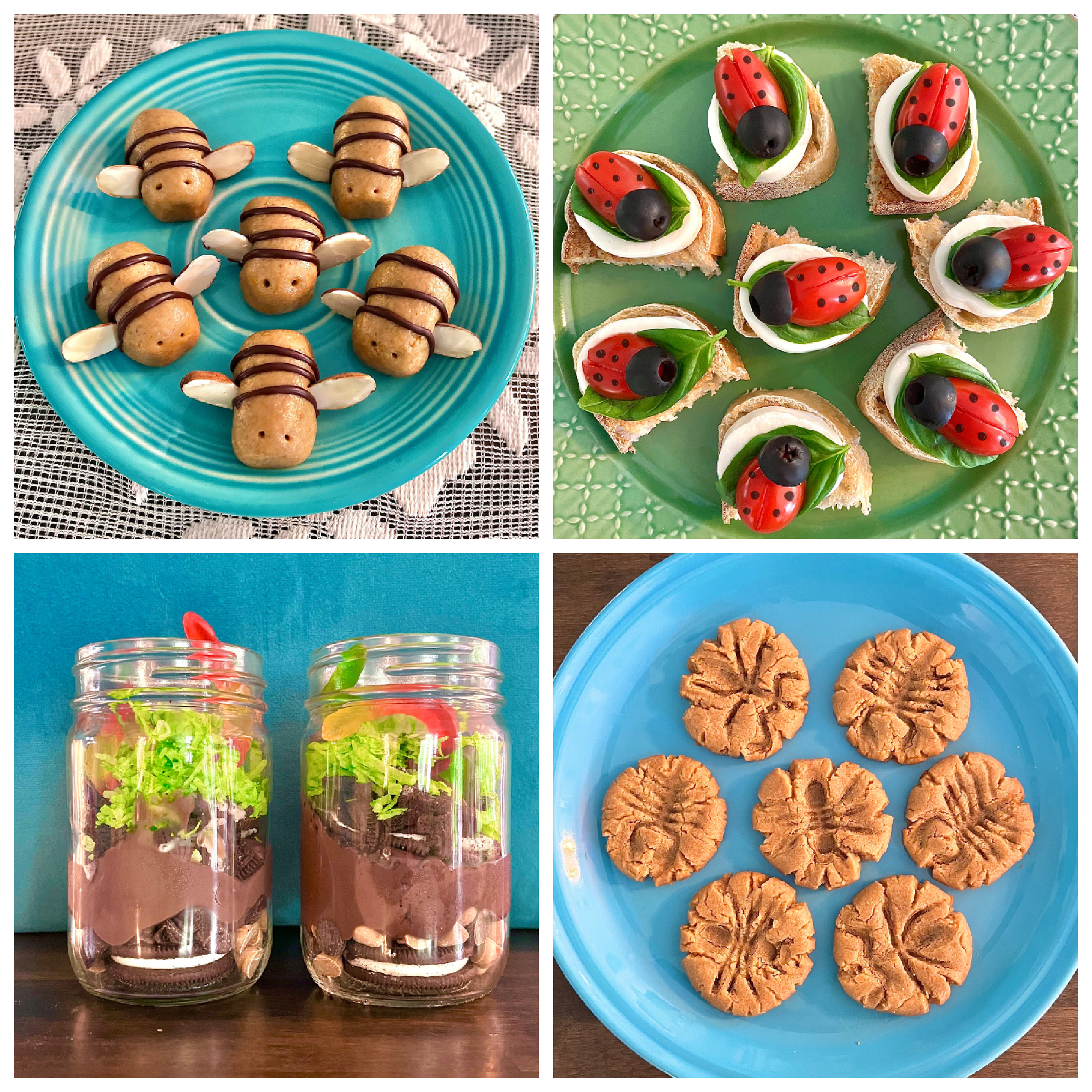 - 4 Teatime Recipes: Insect Fossil Peanut Butter Cookies, Lady Bug Caprese, Peanut Butter Bumblebees, & Layered Edible Soil