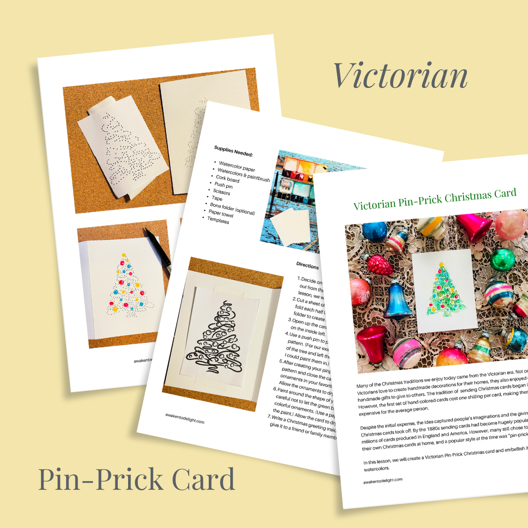 • Victorian Pin-Prick Card A step-by-step PDF of a traditional Victorian craft that your kids and teens can make to give as Christmas cards to friends and family. ($7 value)
