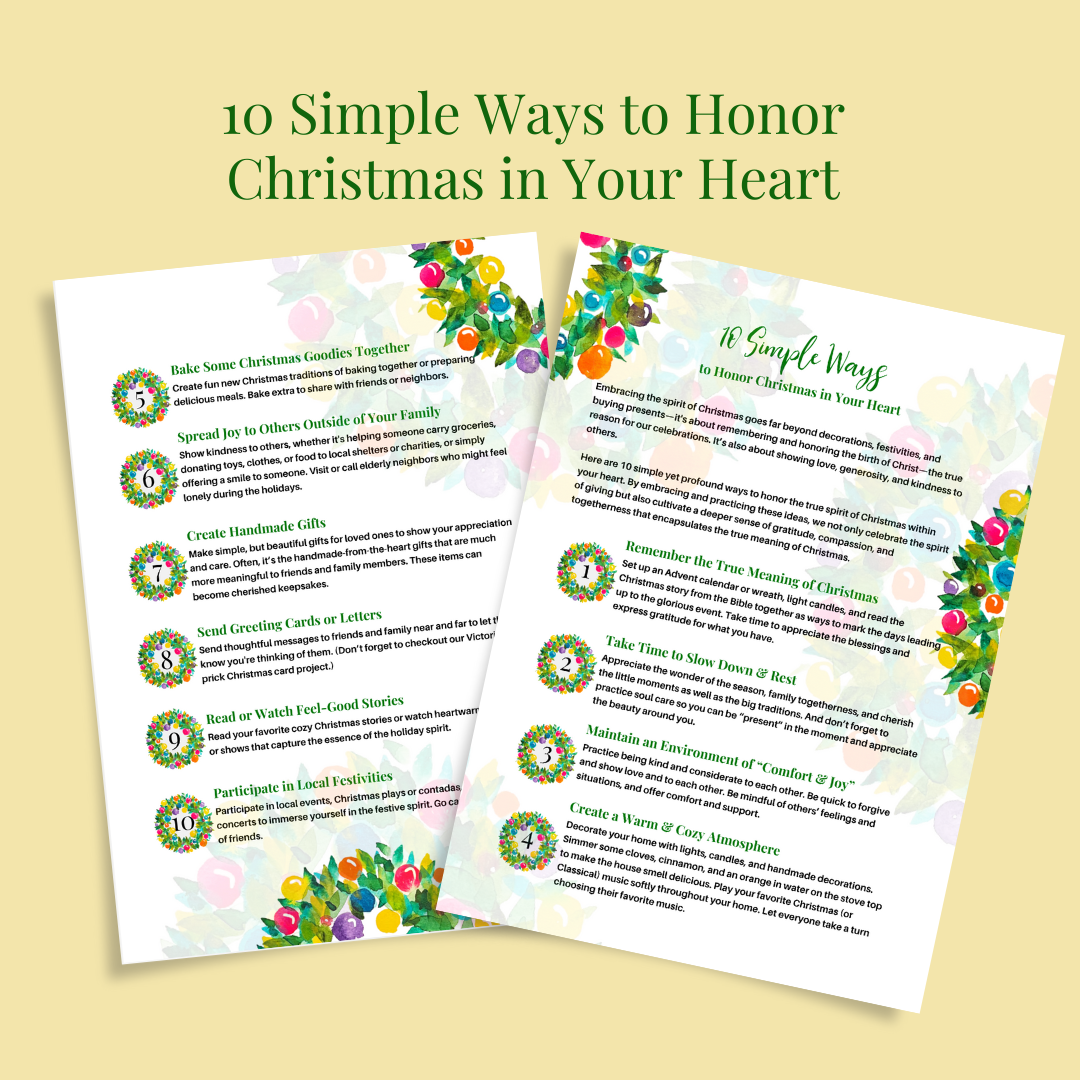 • The Dickensian Christmas Tea Time Guide inspired by “A Christmas Carol,” this tea time guide will help you honor Christmas in your heart Victorian-style! Complete with Christmas poems, a Victorian Christmas themed tea time menu, decoration and dress-up suggestions, a Dickensian name generator, bingo game, scavenger hunt and more! (Regular price = $10)